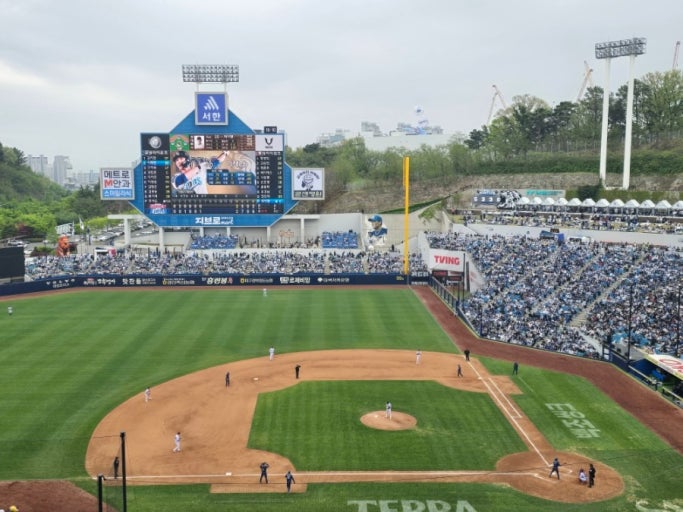 이날 경기장에는 주말을 맞아 많은 관중들이 운집했어요. 응원단의 열창, 관중석 파도타기, 아이린 등장에 환호성까지! 야구의 재미와 K팝의 매력이 함께 어우러진 진짜 ‘축제의 현장’이었죠.